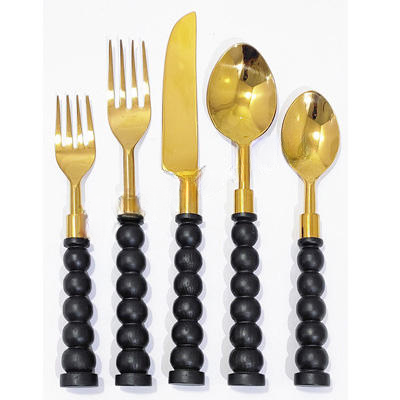 Ensemble de couverts plats cinq pièces de style rétro en vrac vaisselle en acier inoxydable gaufré doré pour les mariages