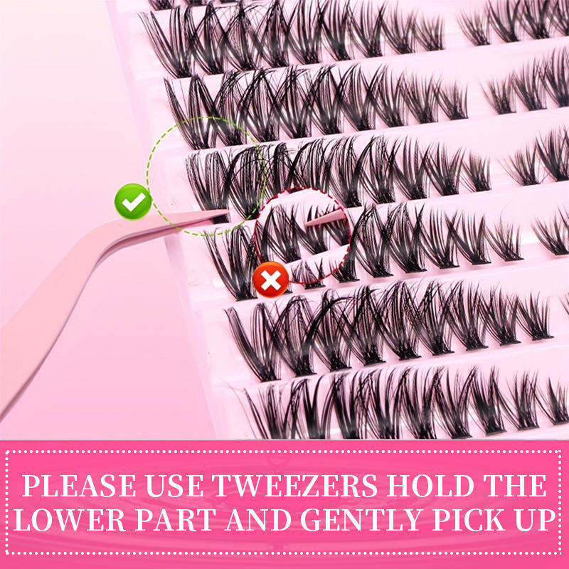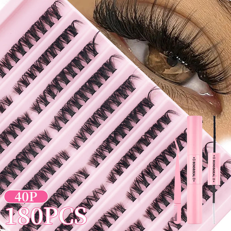 Vente en gros de kits d'extensions de cils DIY, cils en grappes, imperméables, 180 pièces, cils en grappes volumineux et vaporeux, livret de cils