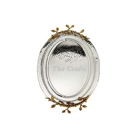 Plateau de service martelé en acier inoxydable en vrac avec différentes tailles plateau de nourriture de vaisselle de restaurant plaqué or