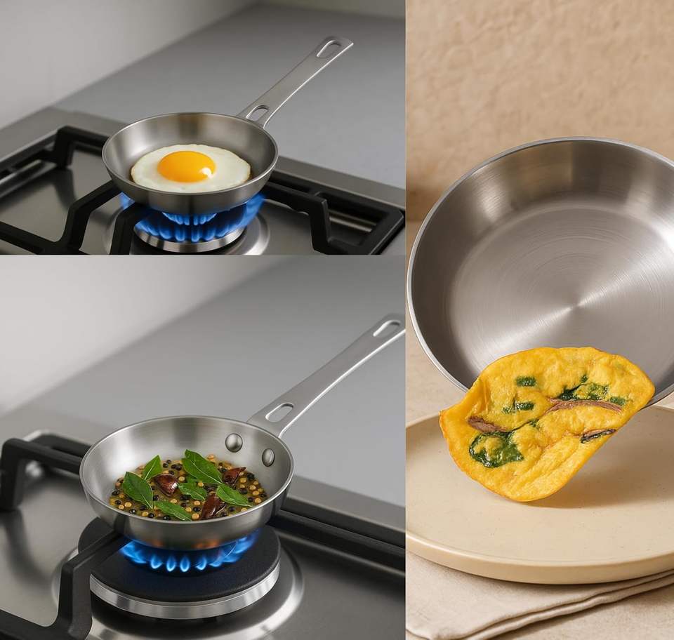 Poêle à frire compacte en acier inoxydable en gros – Mini poêle à sauce et à portion individuelle pour cuisine, maison, restaurant – Vente en gros OEM