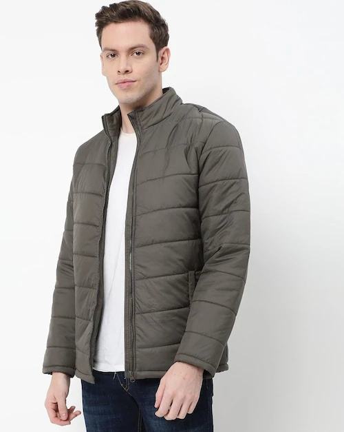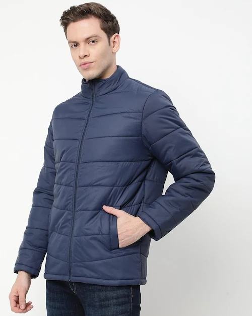 Men's Streetwear Bubble Puffer Jacket Custom Quilted Zip Up Stand Collar Bomber Winter Outerwear