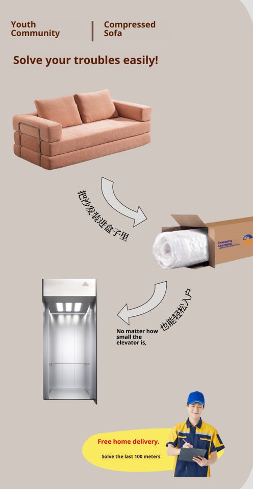 Canapé-lit rectangulaire moderne compressé Teddy en gros - 70 % d'économie de fret, mobilier modulaire 2-en-1 pour petit espace de salon