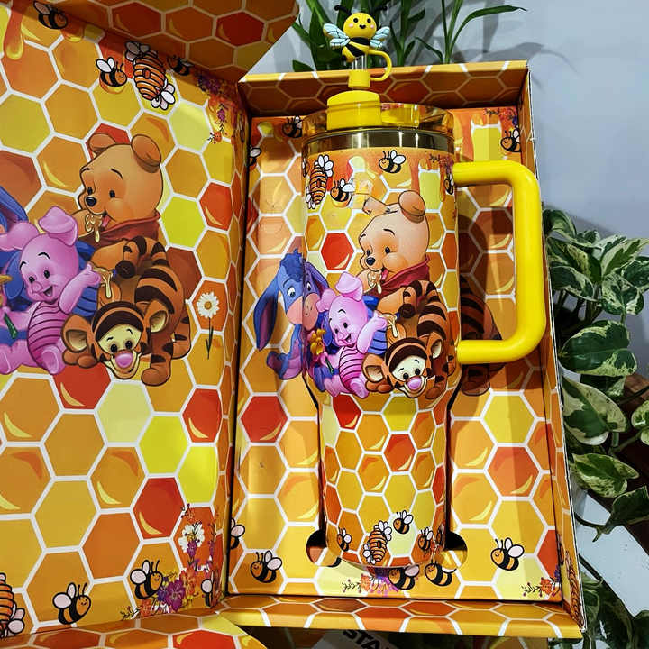 Vente en gros de gobelets isothermes en acier inoxydable de 40 oz avec logo personnalisé, motif ours Pooh, avec poignée et boîte cadeau