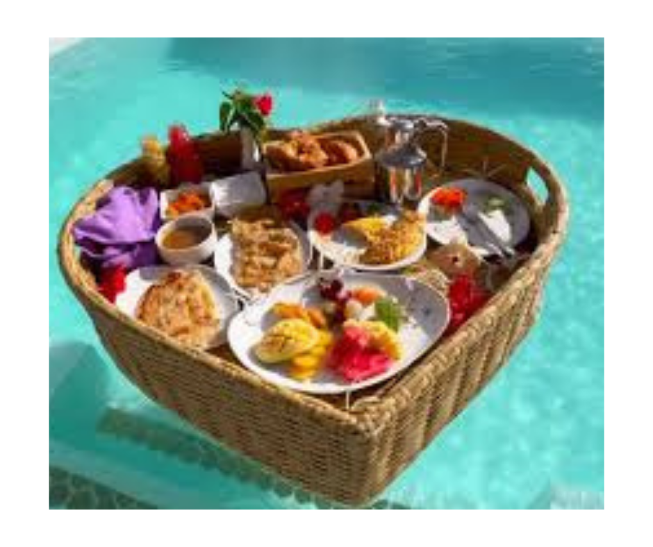 Panier de petit déjeuner flottant en gros en vrac extérieur en rotin piscine plateau de service panier de petit déjeuner flottant en osier pour Villa de villégiature