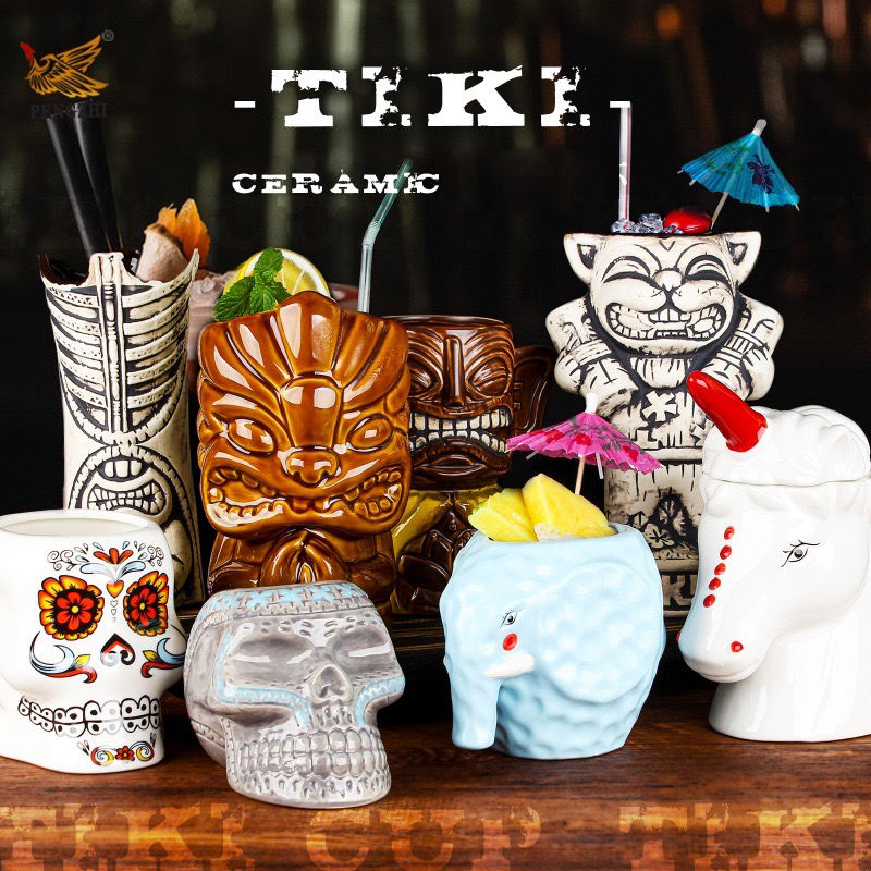 Vente en vrac en gros tasses tiki hawaïennes tasse à cocktail verres tiki à cocktail en céramique personnalisés chope de bière créative tasses tiki pour bar