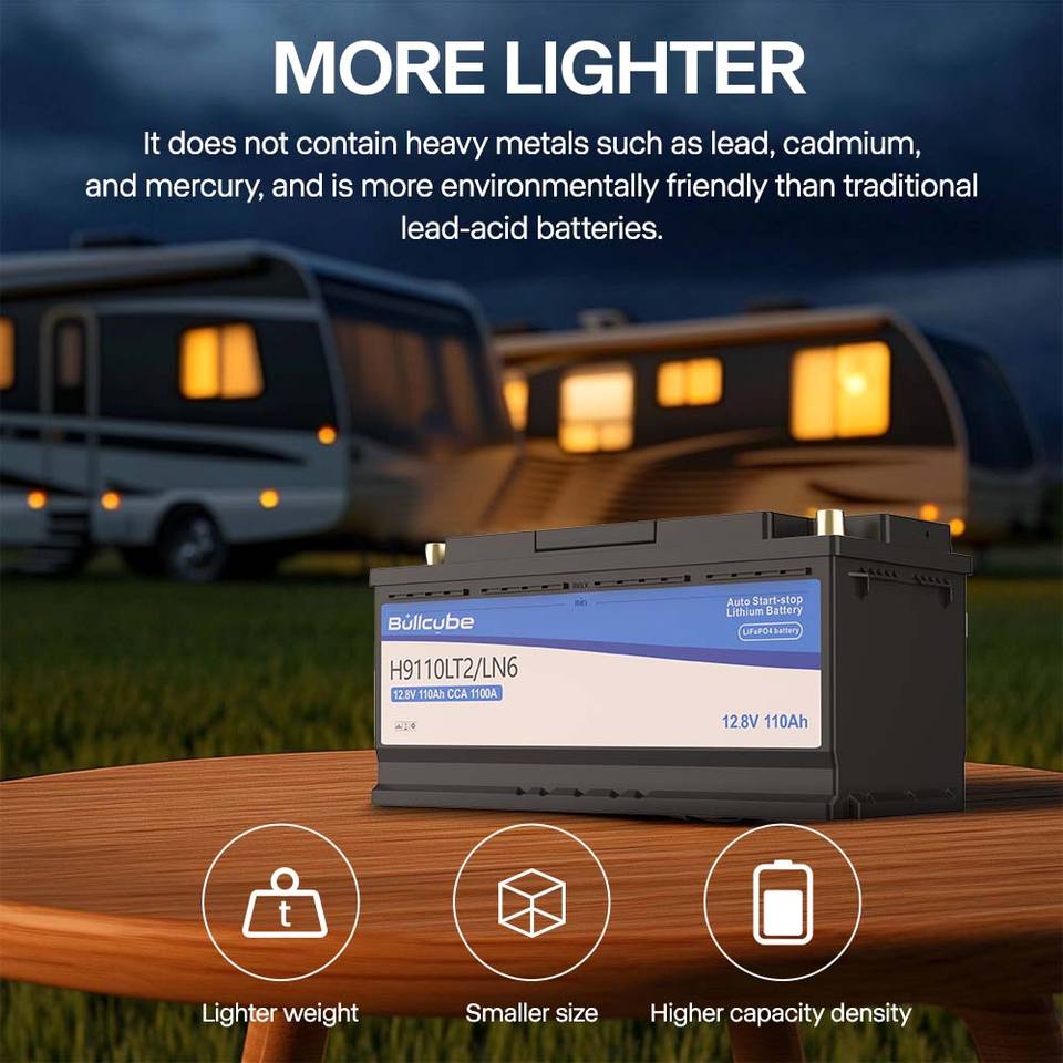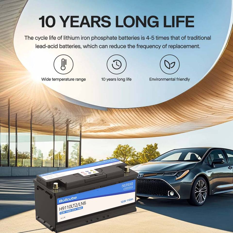 Bullcube 12v Stop Start Batterie Voiture Agm Batterie Start Stop 110ah Lifepo4 Start Stop Batterie pour Rv Bus Véhicule