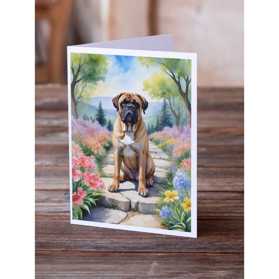 Bullmastiff Spring Path capricieux A7 taille 5x7 cartes vierges paquet de 8 avec enveloppes cartes de voeux