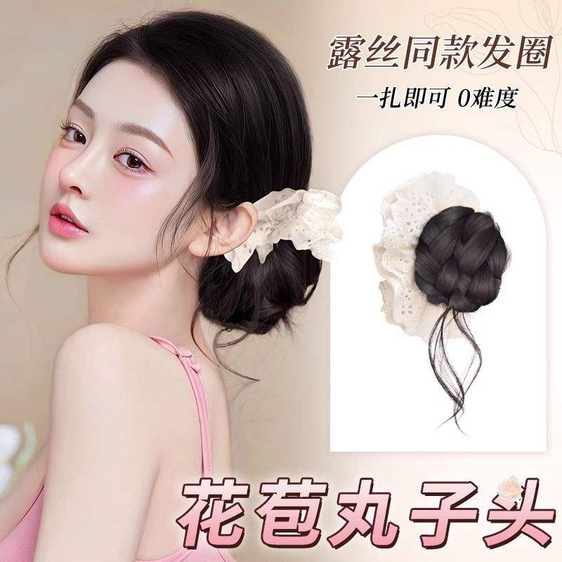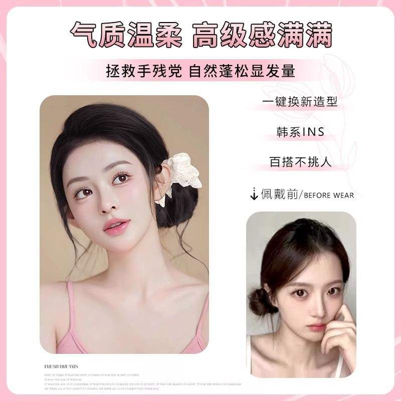 Bun Wig With Clip Flower Bud Updo High Crown Wig For Women Hair Extension