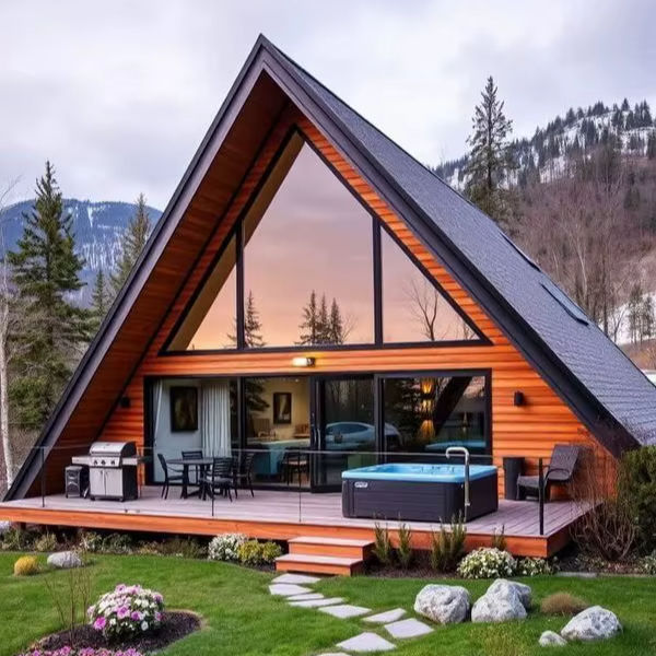 Bungalow Triangle Glass Wood Bungalow for Villa Kitchen Bathroom Hotel Living Room Bedroom Application