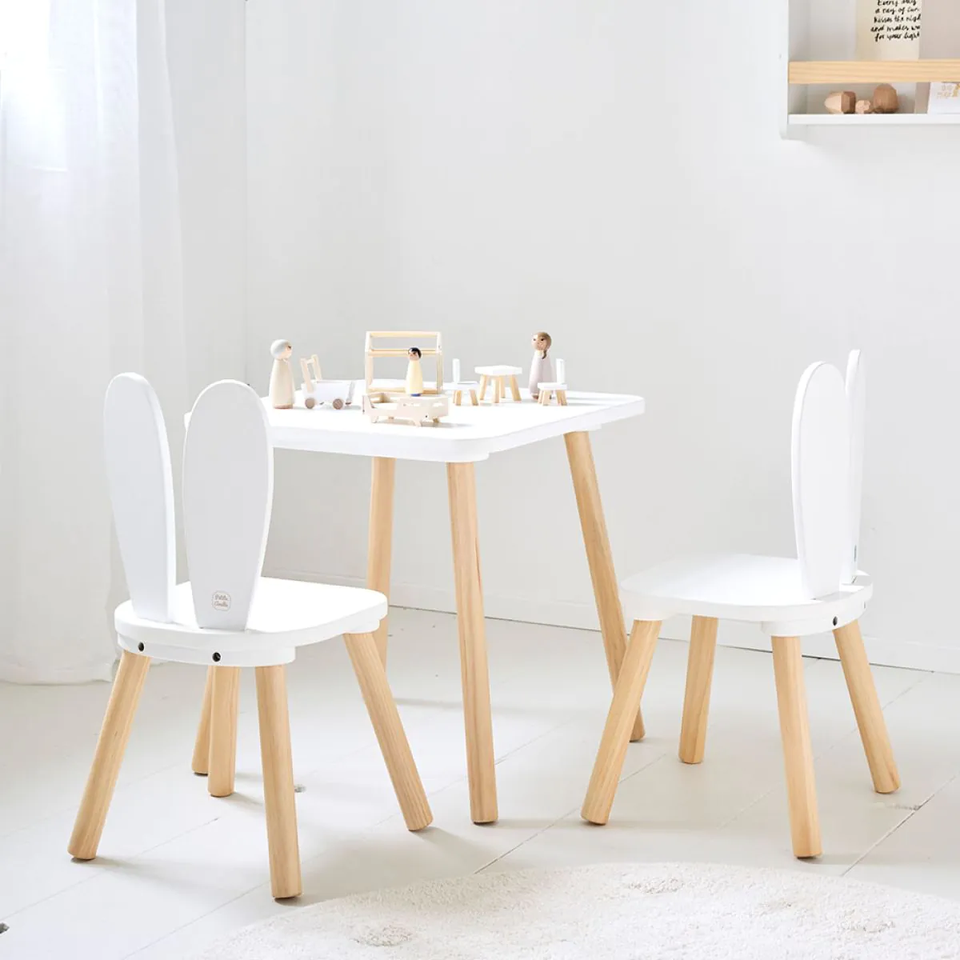 Ensemble table et chaise d'étude pour enfants avec oreilles de lapin, bureau en bois pour enfants avec 2 chaises pour tout-petits