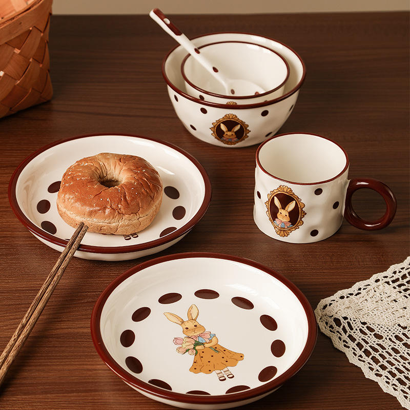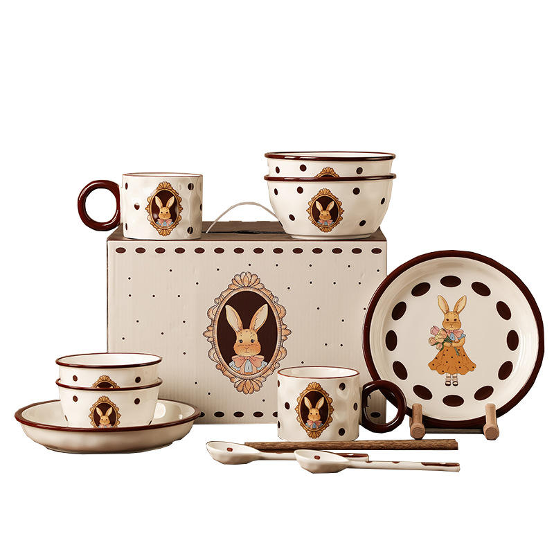 Service de table en céramique pour 4 personnes, motif lapin de Pâques vintage, Peter Rabbit, 4 bols, 4 cuillères, 4 tasses, pour couple, compatible micro-ondes
