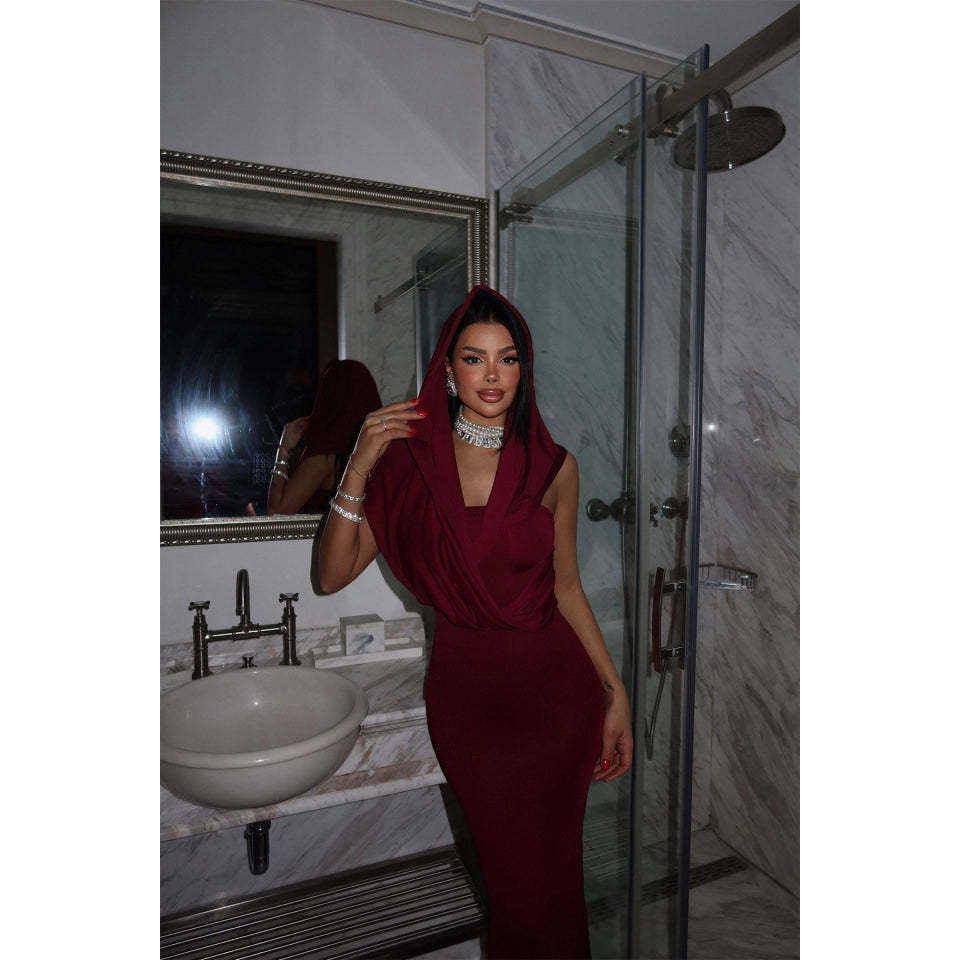 Robe de soirée longue bordeaux basique, style bal, coupe trapèze avec taille basse, pour soirée formelle, longueur ras du sol, ornée de paillettes