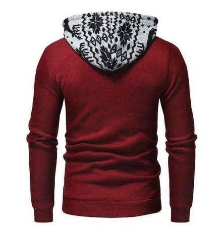 Burgundy Christmas Custom Printed Hoodie Reindeer Snowflake Pattern Warm Breathable Fleece Winter Festive Holiday Style Unisex