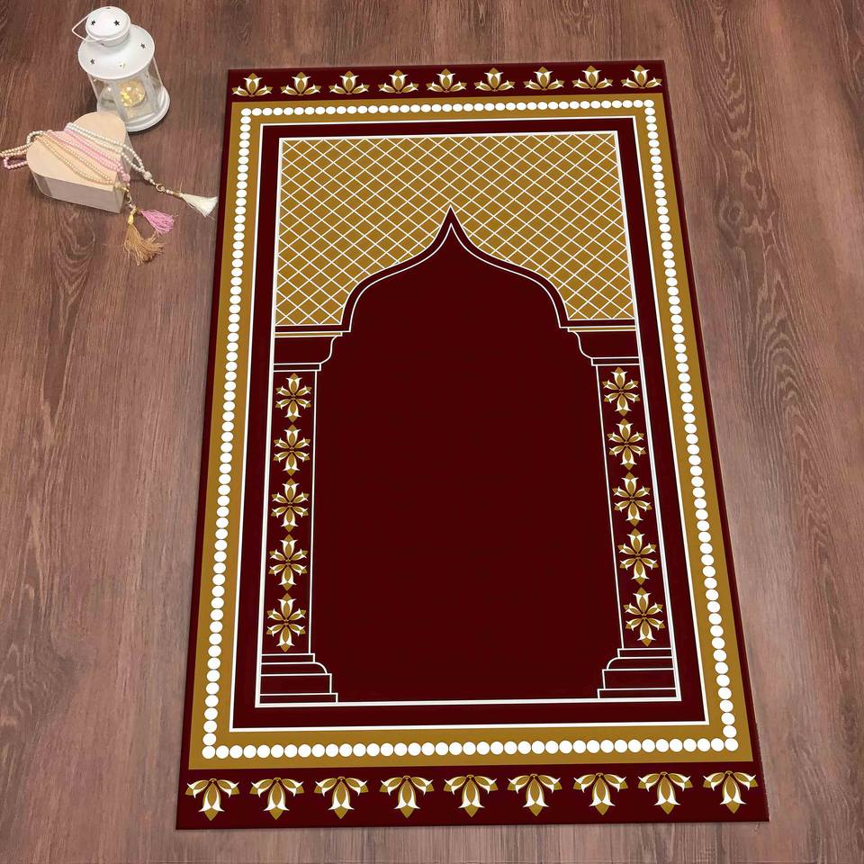 Tapis de prière bordeaux, tapis de prière jaune, tapis spirituel, tapis imprimé, tapis à poils doux