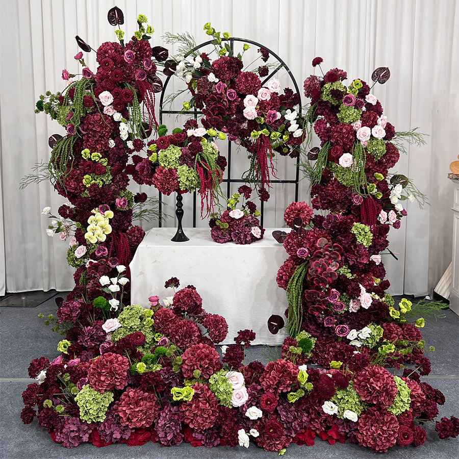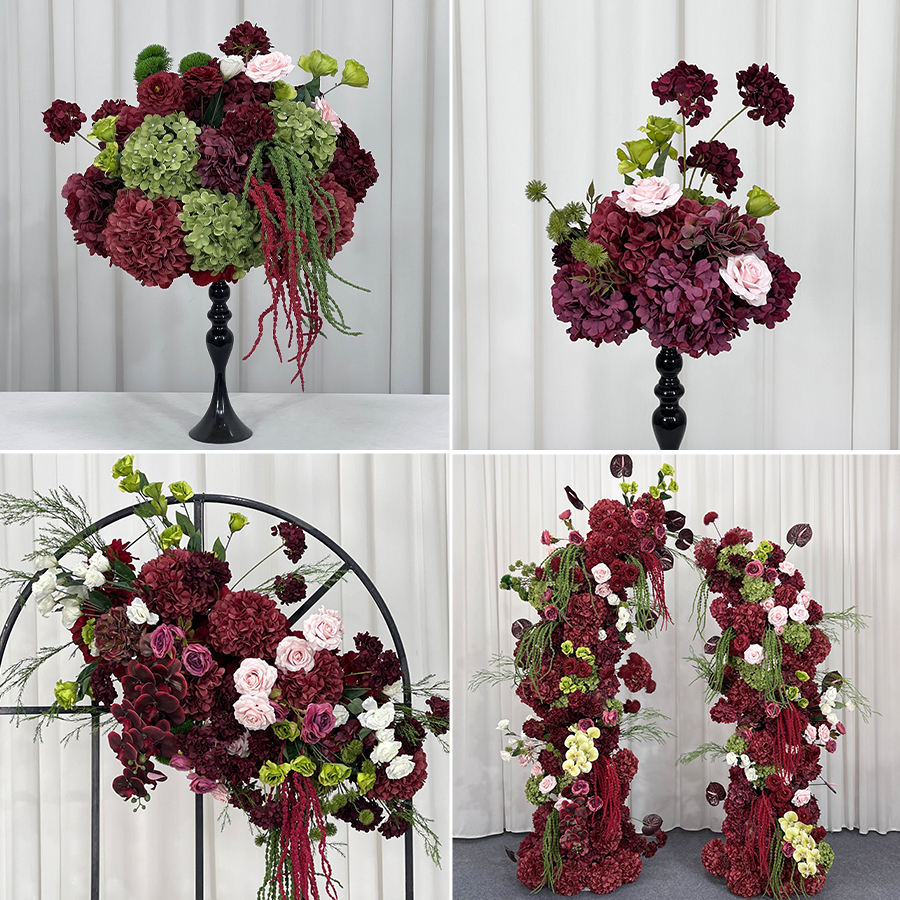 Ensemble de fleurs artificielles en soie bordeaux pour la décoration de fond de scène de mariage, style moderne, haute qualité, durable