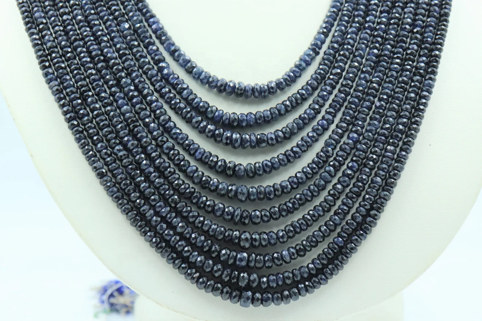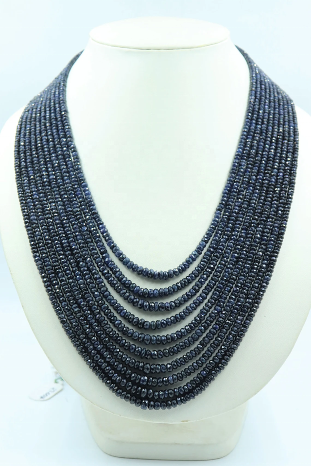 Name:10 STRANDS of Natural Blue Sapphire Faceted Rondelle Necklace