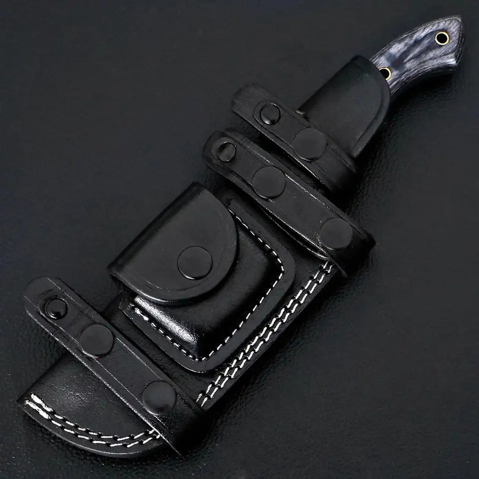 Couteau Tracker Burraq personnalisé fait main en acier Damas, manche intégral, étui en bois et cuir, cadeau d'anniversaire OEM, camping en plein air