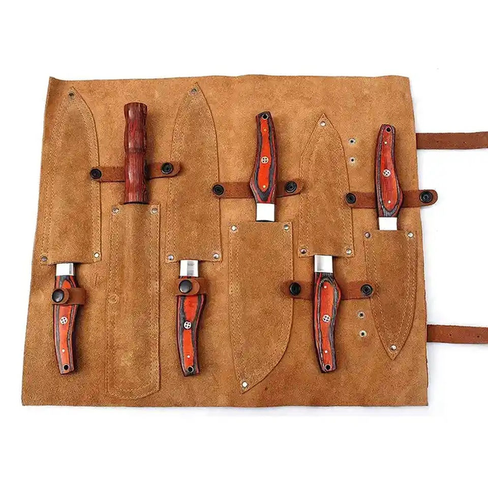 Ensemble de 5 couteaux de chef professionnels Burraq, faits à la main, en acier carbone et acier Damas, avec manche en bois moderne et écologique, ambidextres