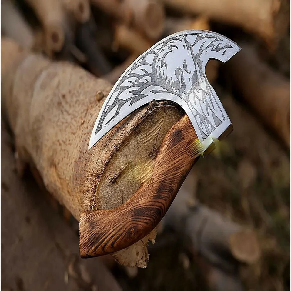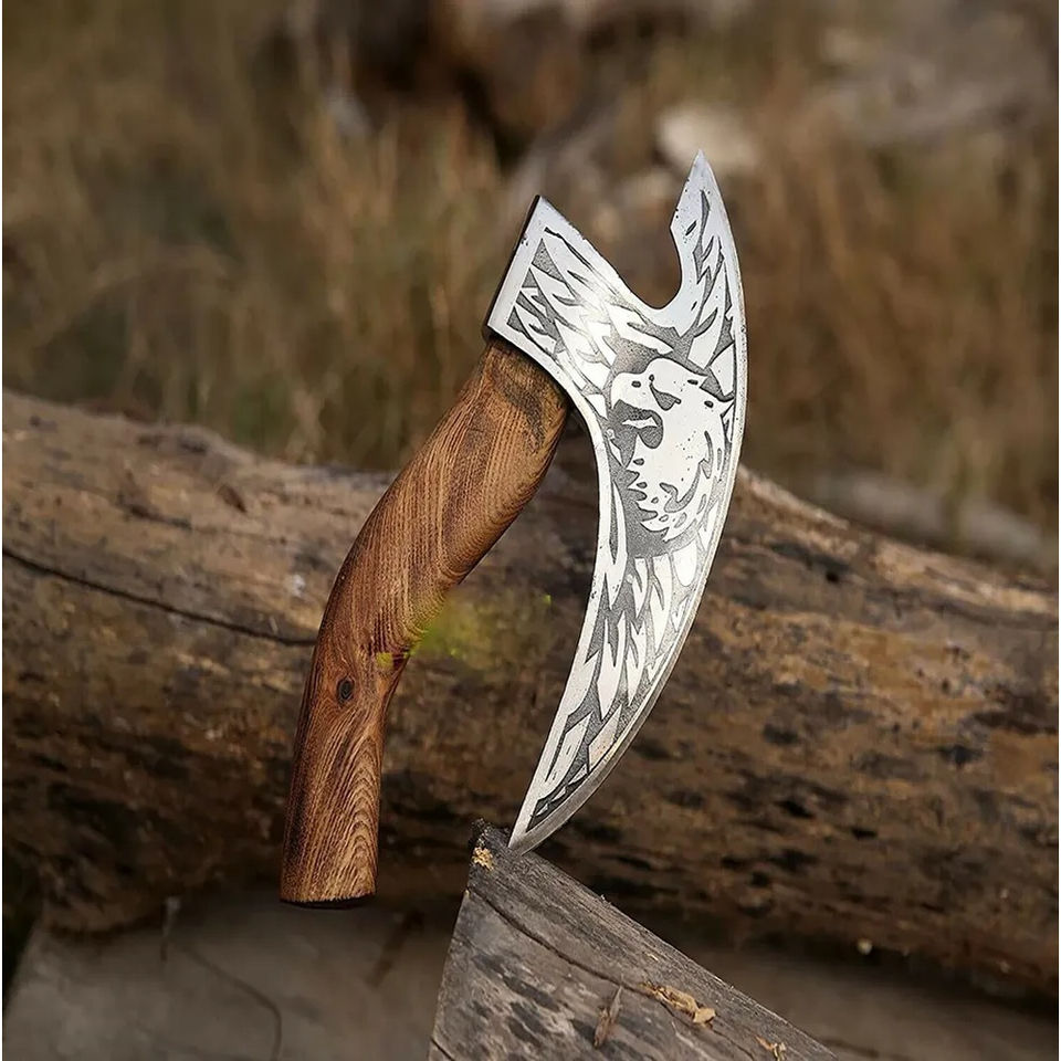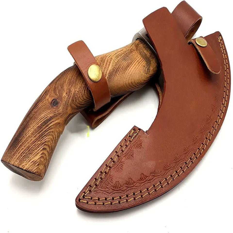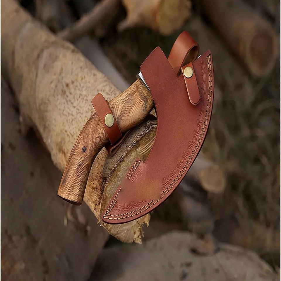 Burraq Couteau à pizza Tomahawk en acier au carbone fait main, manche en bois de rose, étui en cuir, DIY, industriel, 9 pouces, camping, extérieur, Fête des Pères