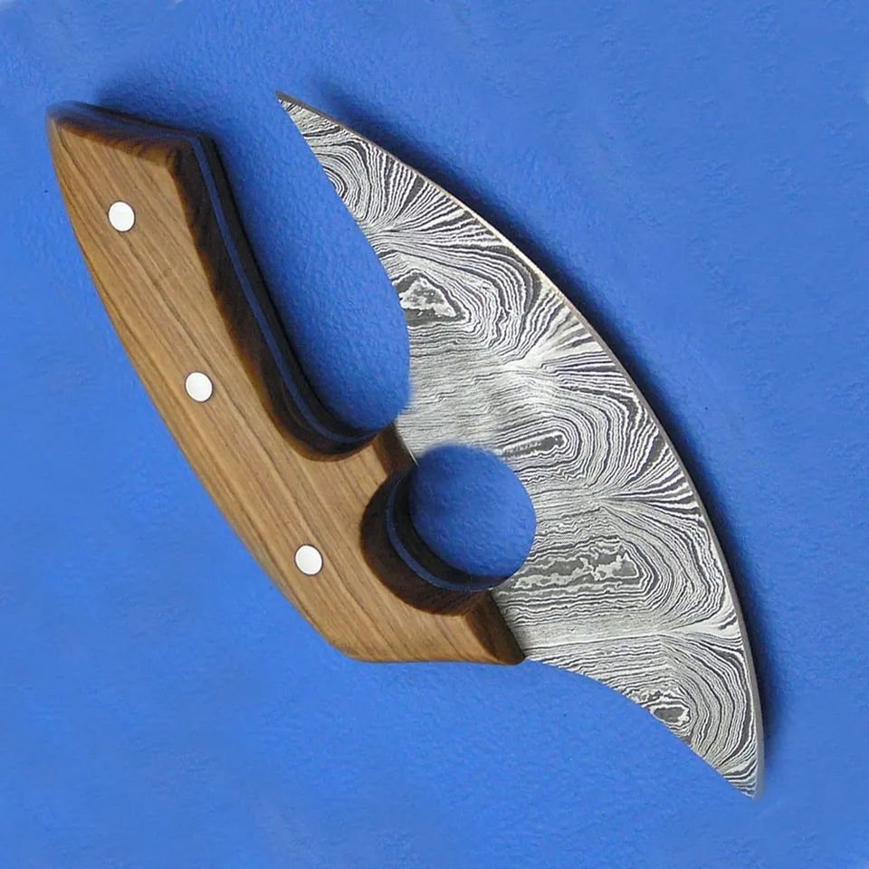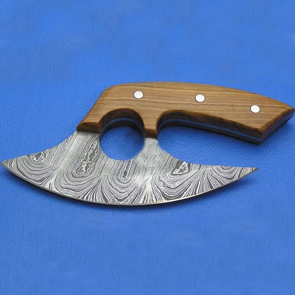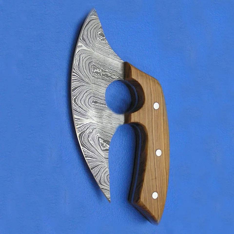Couteau Ullu Burraq en acier Damas fait main, manche en bois, trancheur à pizza, fourreau en cuir, 6-7,9 pouces, ambidextre, pour l'extérieur