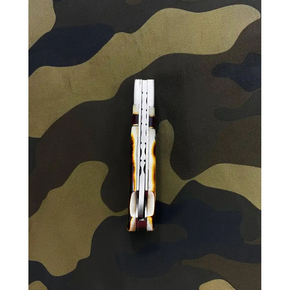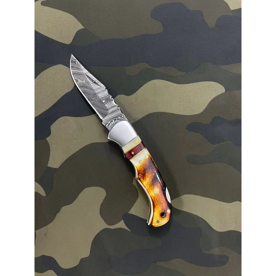 Couteau de poche multifonctionnel Burraq personnalisé en acier Damas, à lame coulissante, 8 pouces, avec étui en cuir, OEM
