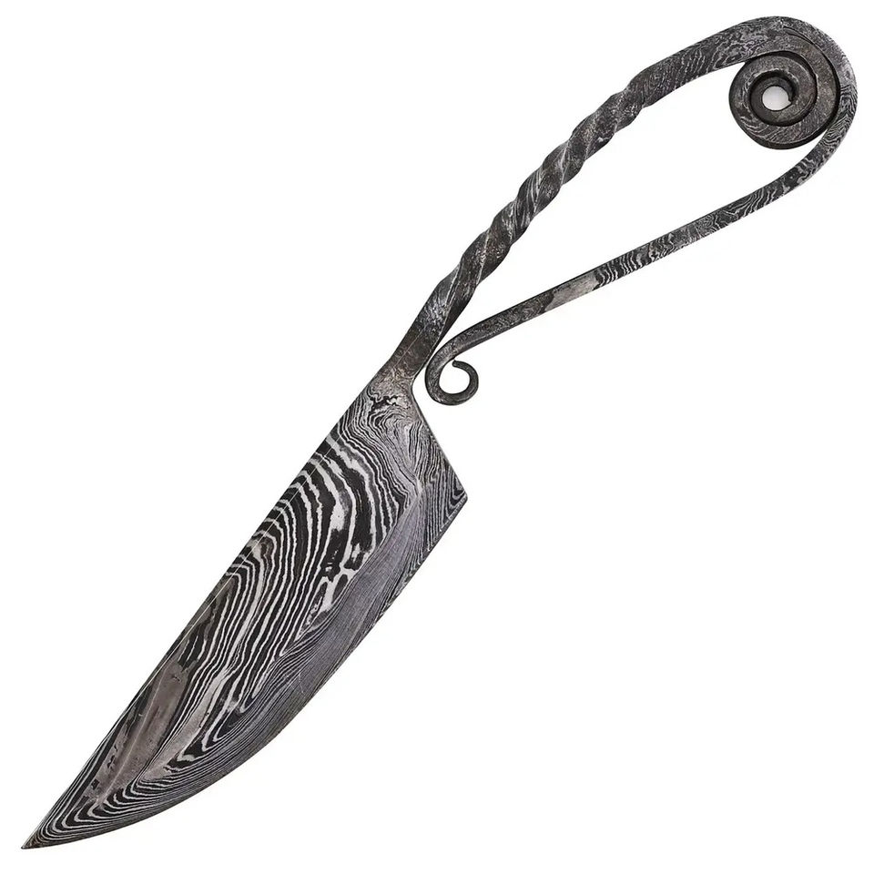 Couteau de cuisine Burraq artisanal en acier Damas forgé, style médiéval antique - Lame multifonctionnelle, options DIY et OEM personnalisables