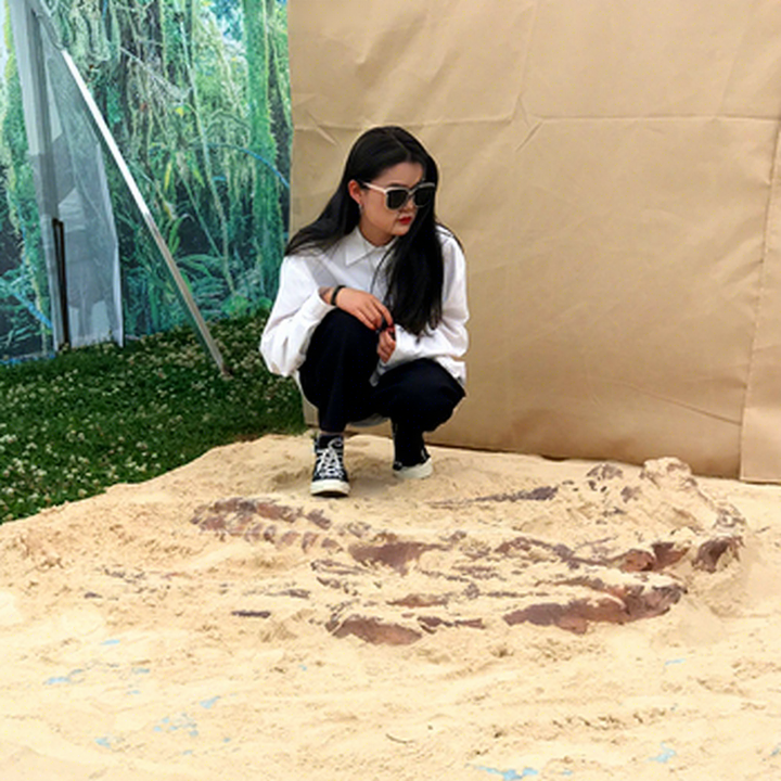 Jeu éducatif pour enfants, péillons de dinosaure dans le sable,