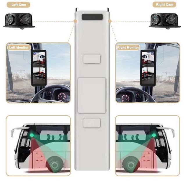 Caméra de recul latérale pour bus, camion, camping-car, double objectif, rétroviseur électronique gauche/droite, vue de l'angle mort arrière, moniteur 10,36 pouces