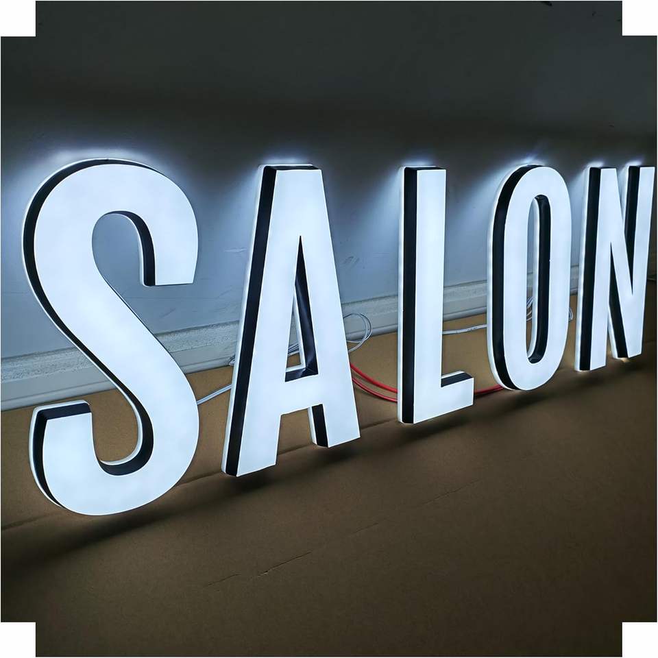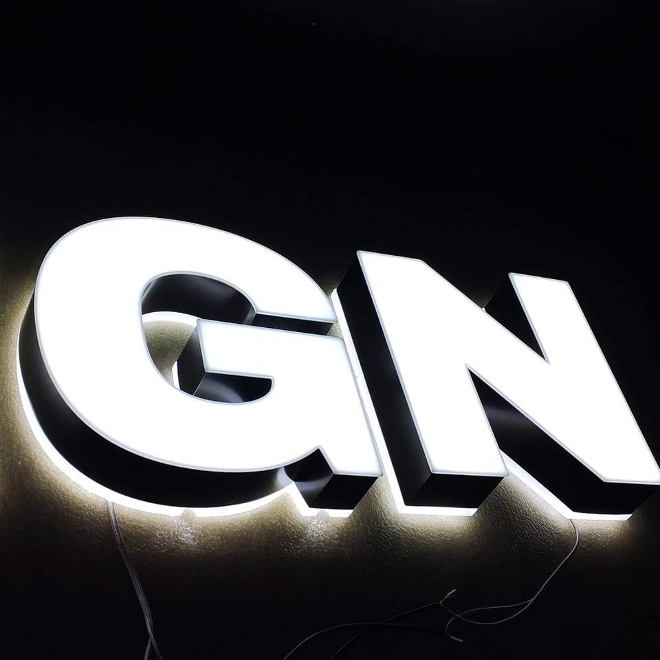 Enseigne lumineuse LED 3D personnalisée pour entreprise, en métal et acrylique, rétroéclairée