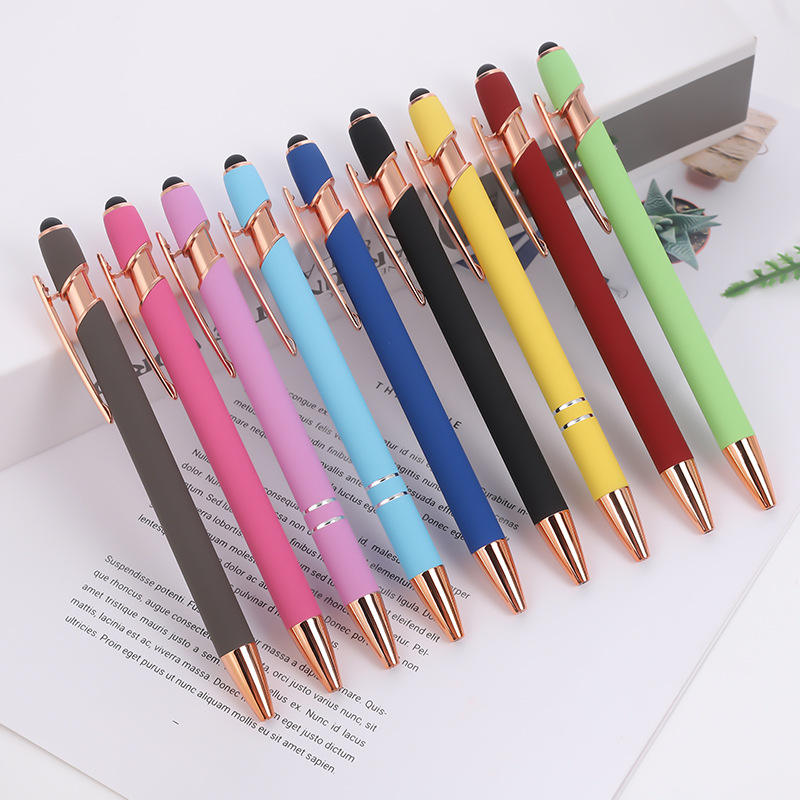 Business Gifts Ball Point Soft Cover Promotional Metal Rubberized Ballpoint Pen Aluminum Touch Stylus Custom Pens