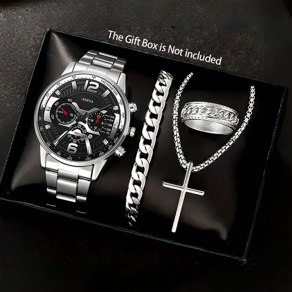Ensemble Montre Homme d'Affaires Haut de Gamme, Bracelet Acier Inoxydable, Verre, Quartz, Date Automatique, Affichage Digital 41mm, Vente en Gros Fabricant