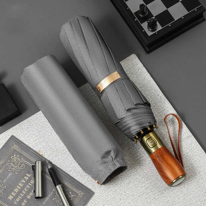 Name:Wooden Handle Custom logo Three Folding Umbrella
