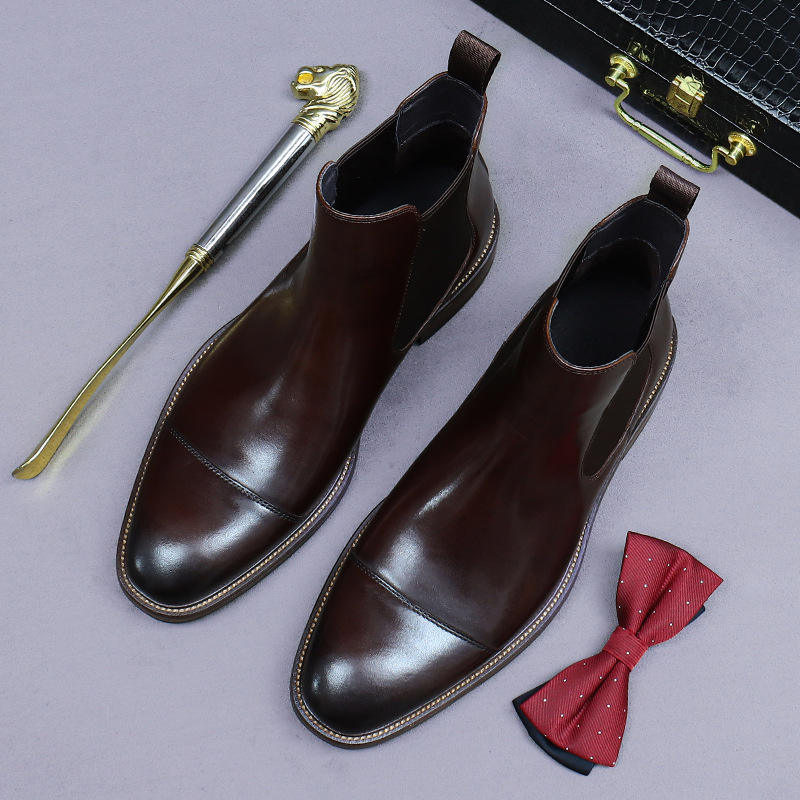 Bottes à bout renforcé en cuir pour hommes professionnels, chaussures habillées à la cheville pour le bureau, design tendance, bottes de moto pour hommes