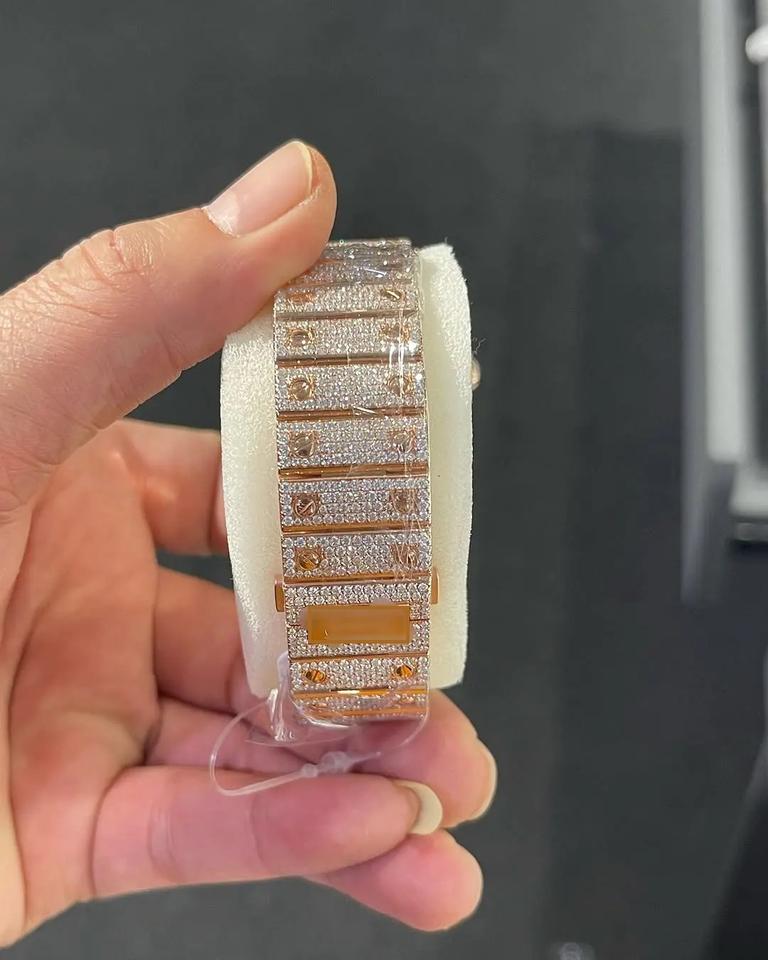 Montre automatique de luxe pour homme, cadran or rose, entièrement sertie de diamants Moissanite VVS, style Hip-hop