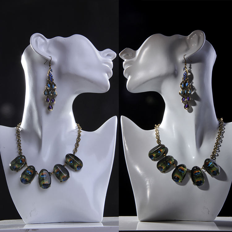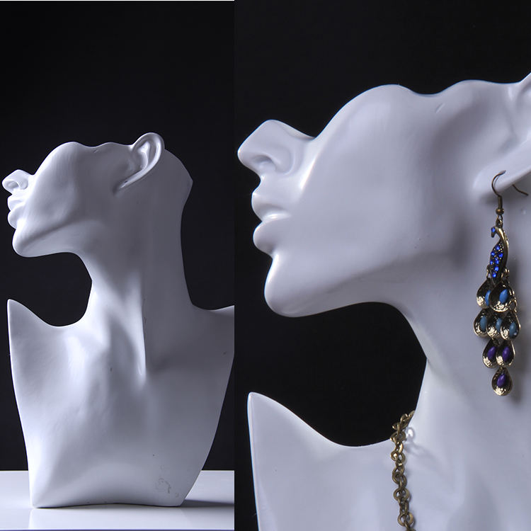 Mannequin Buste Présentoir Boucles d'Oreilles Colliers, Torse Femme en Plastique H1080
