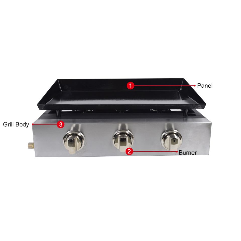 Plancha de table au butane, barbecue à gaz, table plate, propane, teppanyaki, 3 brûleurs, grils à gaz BBQ