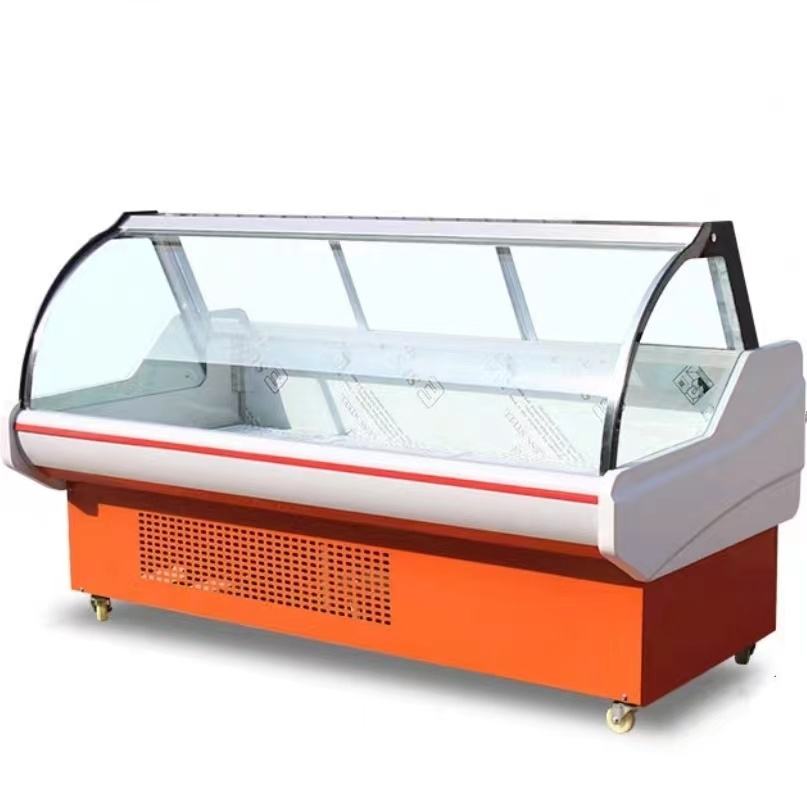 Vitrine de boucherie en verre, vitrine pour bœuf frais, poisson, charcuterie, vitrine horizontale, congélateur pour supermarché