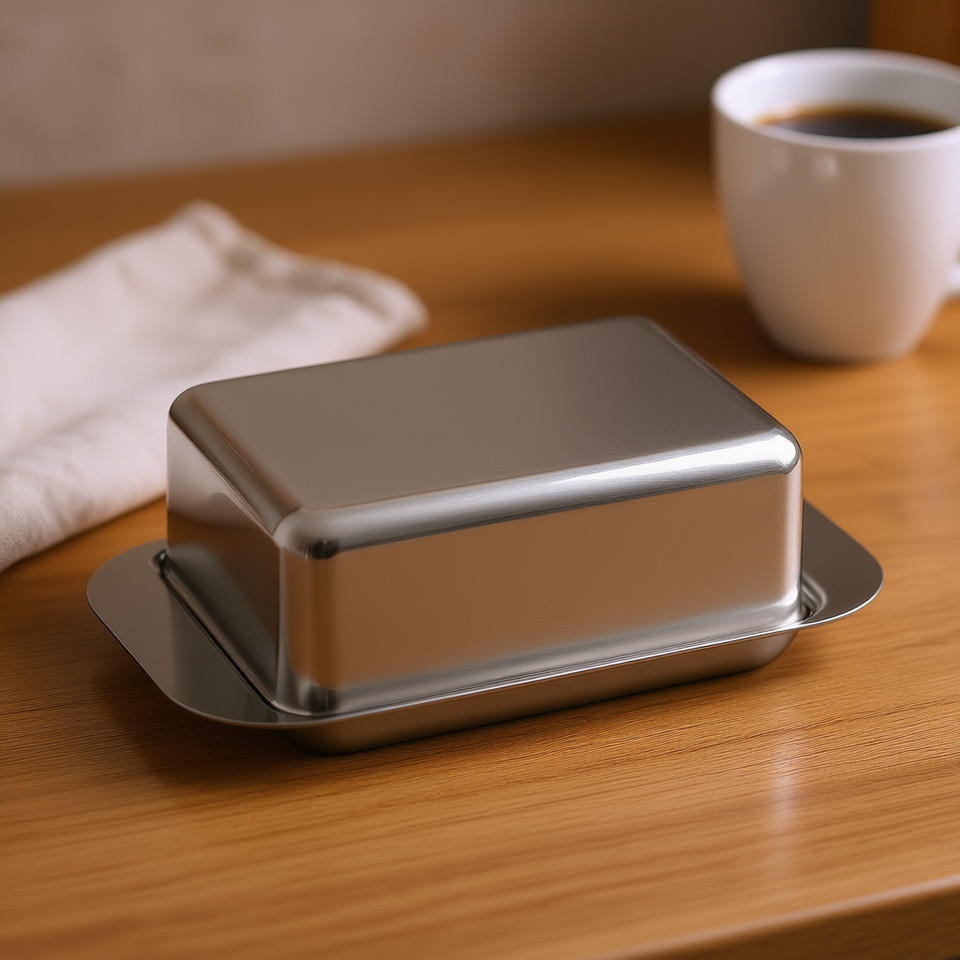 Pot à beurre rectangulaire en acier inoxydable de 125 g avec couvercle pour la conservation du beurre dans la cuisine