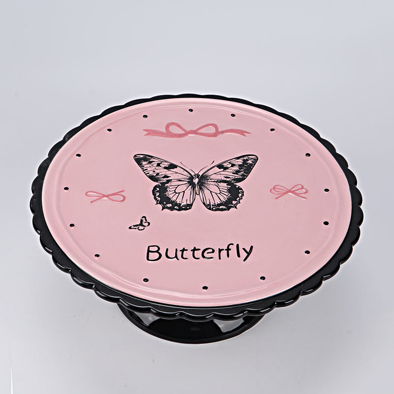 Support à gâteau en céramique Butterfly Design-Entièrement personnalisable dans n'importe quelle couleur, taille, logo ou forme-Parfait pour les boulangeries, les cafés