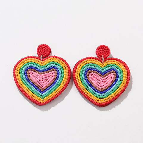 Boucles d'oreilles classiques brodées de perles de rocaille motif papillon, faites à la main en coton léger, en forme de cœur, couleurs personnalisées, style 142