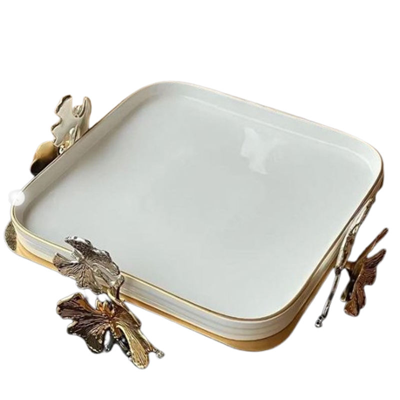 Plats et plateaux en métal aluminium créatifs de forme carrée à motif papillon, faits à la main, à la mode, sous glaçure, couleur blanche