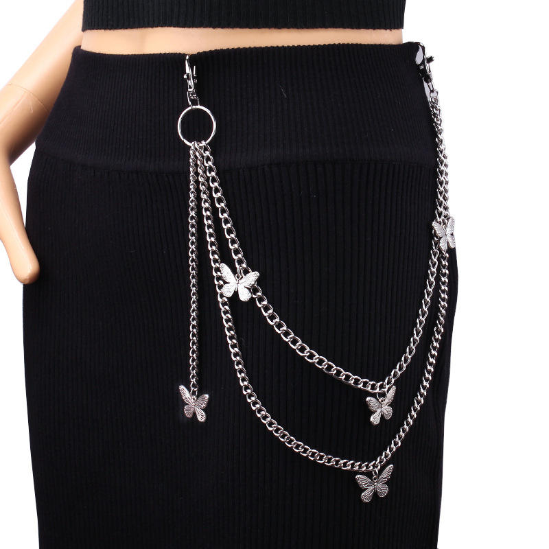 Chaîne de taille papillon double couche en alliage de zinc, style punk, chaîne de corps tendance hip-hop, chaîne de pantalon multicouche pour usage quotidien