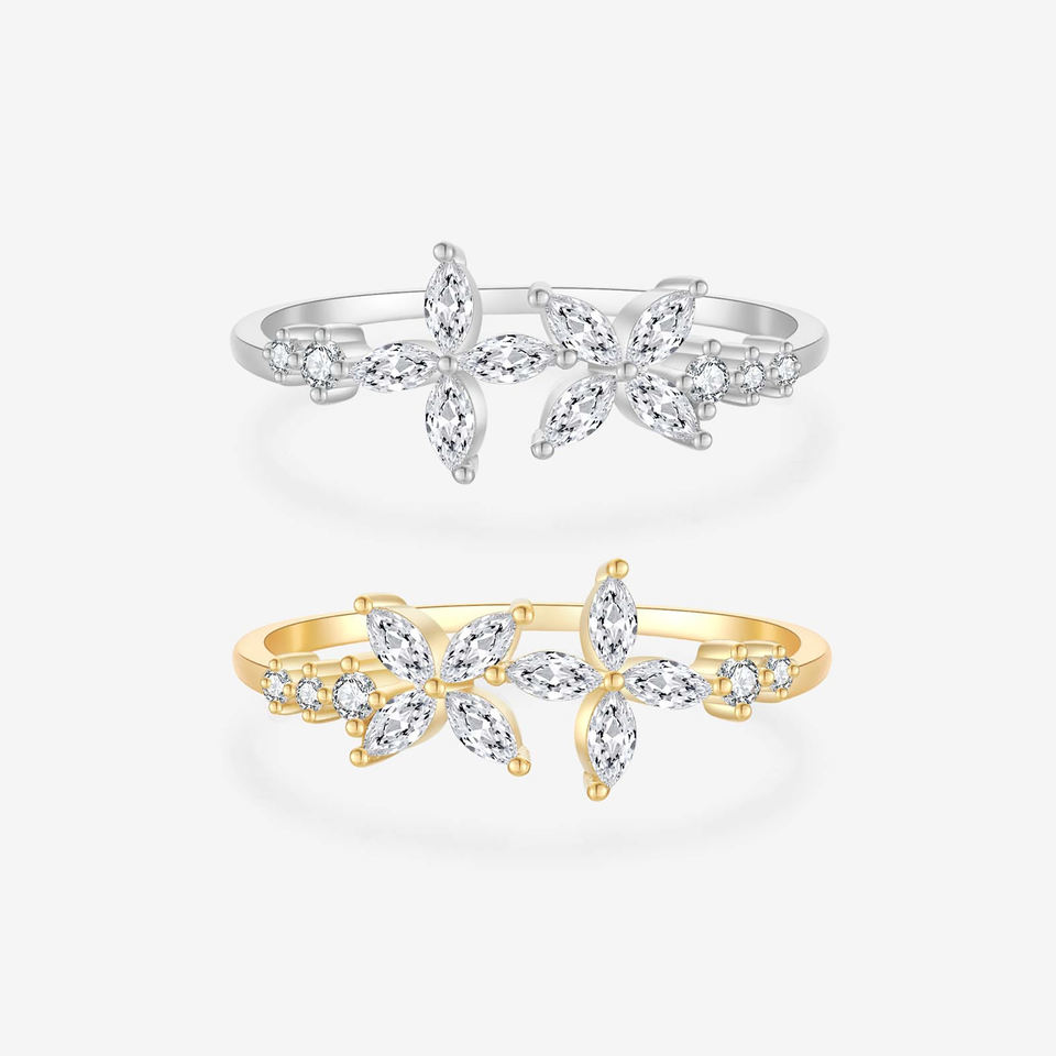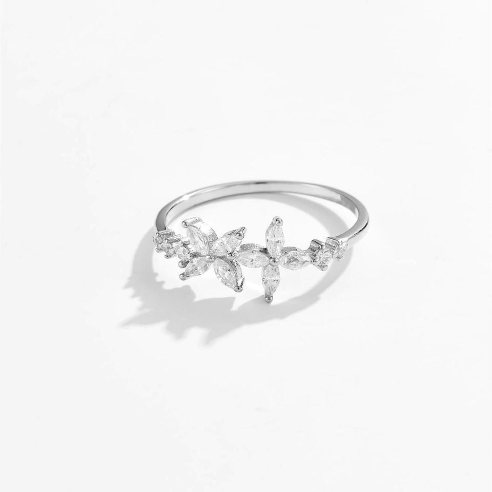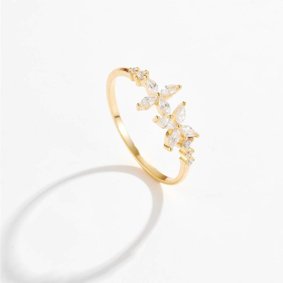 Product name:10K Solid Gold Butterfly Marquise Cut Floral Design Ring