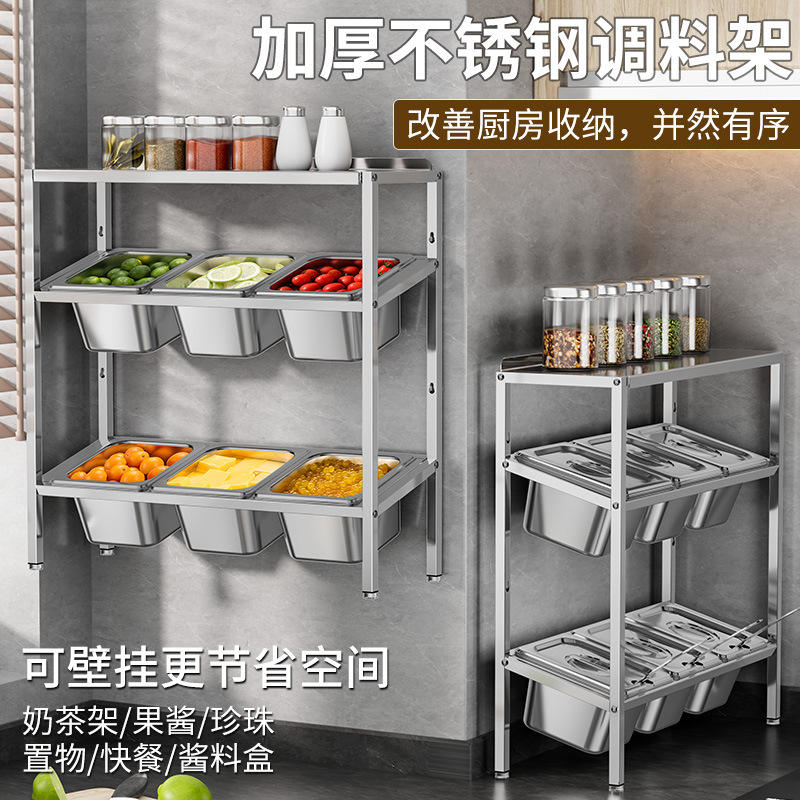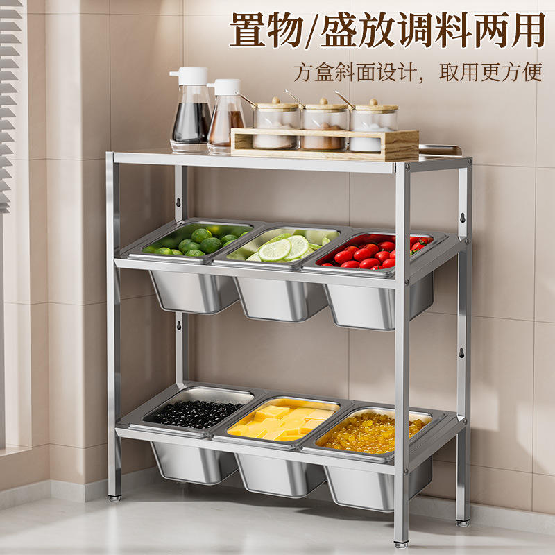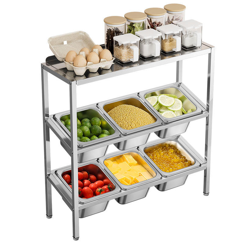 Étagère à condiments en acier inoxydable à trois niveaux, 6 compartiments, parfumée, pour usage commercial, antirouille, pré-aspirée