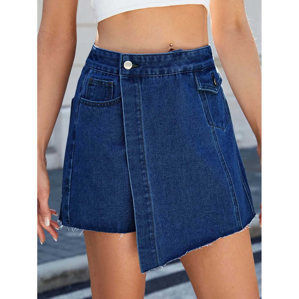 Jupe en jean asymétrique à ourlet effiloché, ornée d'une ceinture à boutons, coupe crayon décontractée et sexy, taille légèrement ajustée, idéale pour l'été, l'automne et l'hiver, disponible en plusieurs couleurs.