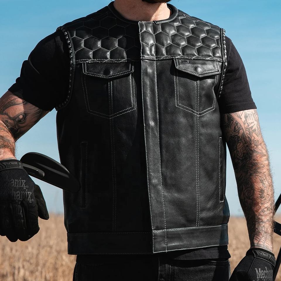 Gilet en cuir à fermeture boutonnée - Veste de moto en cuir de vache véritable - Gilet en cuir respirant et élégant de style Outback, fabriqué au Pakistan