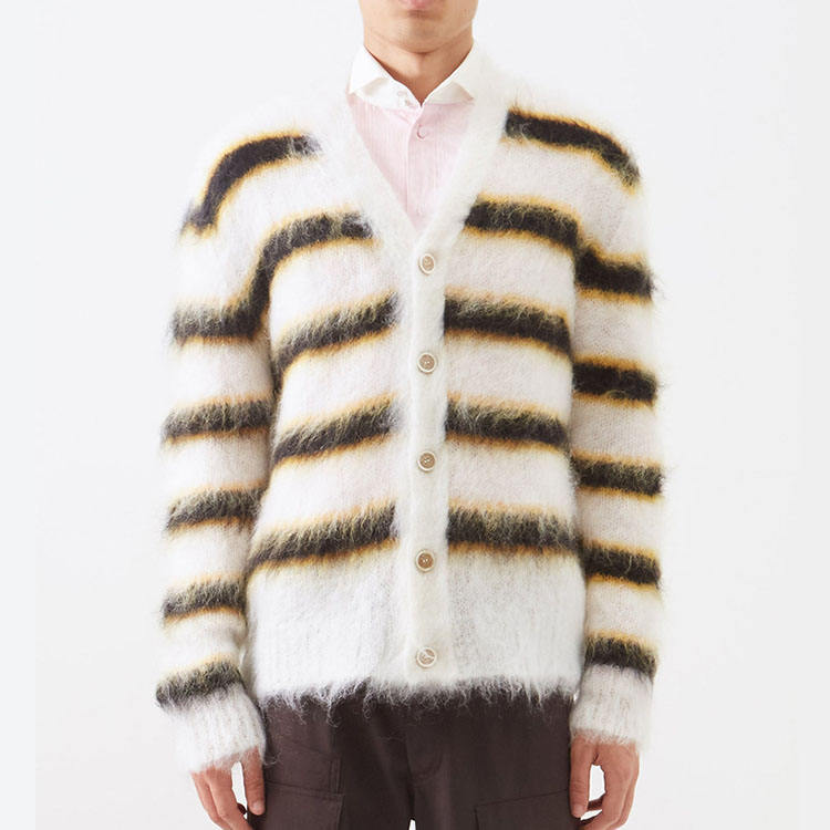 Pull cardigan pour homme en maille jacquard mohair, col en V, fermeture boutonnée, personnalisable, mode d'extérieur, hiver, nouveau design 2025