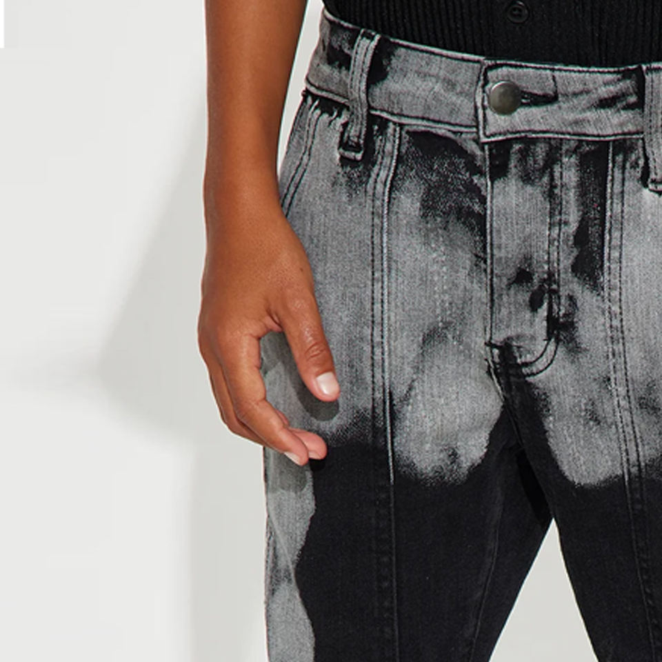 Pantalon pour garçons avec fermeture boutonnée et zip, logo personnalisé, design élégant 2026 / Pour acheteurs en gros avec effet dégradé et poches latérales