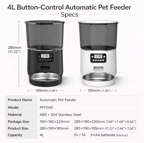 Nom du produit:Distributeur automatique de nourriture pour animaux de compagnie 4L à commande par bouton