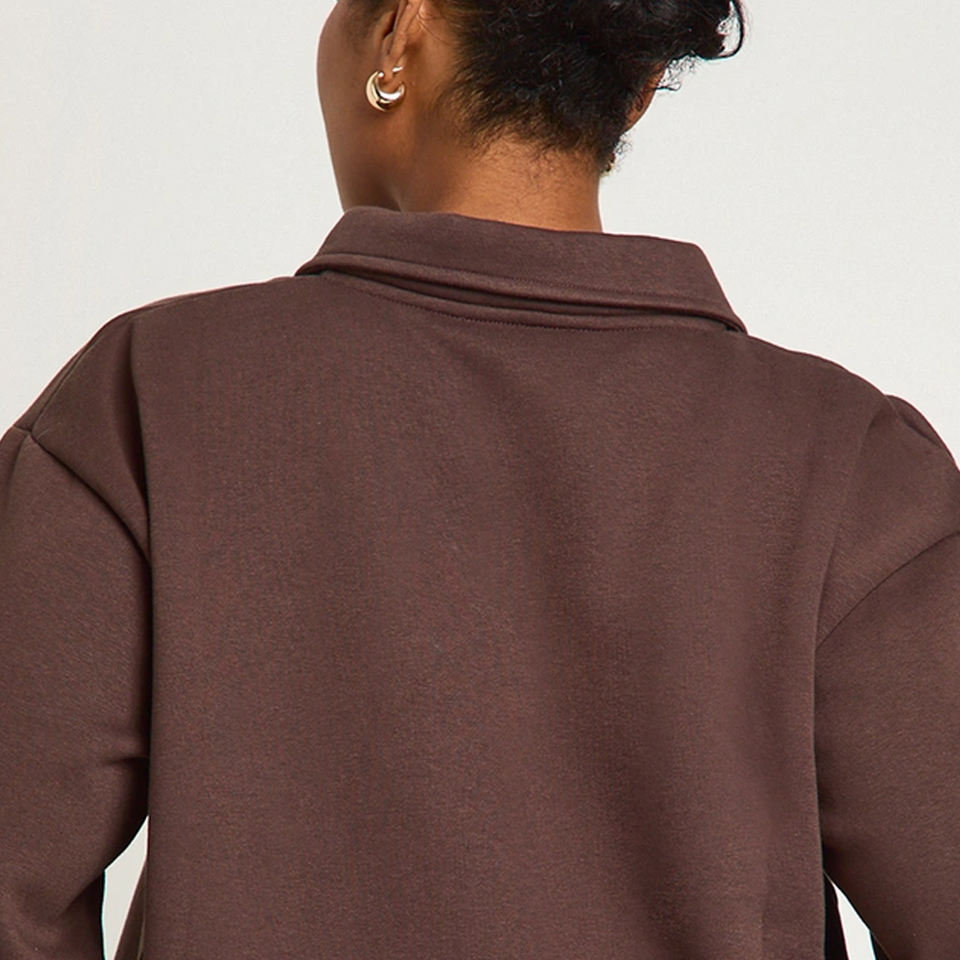 Sweat-shirt à col boutonné pour femmes en tissu de coton doux offrant respirabilité et confort avec manches longues et logo